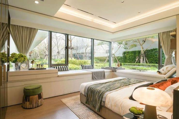 主卧“天空之境”立面,大面玻璃造价高昂,提升豪宅感