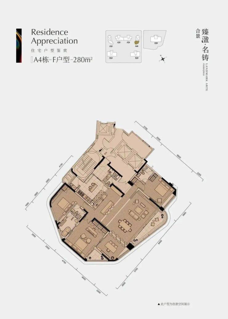 确保圈层纯粹性。主推 140-280㎡四至五房定制化大平层及 322-403㎡商业大平层,全南北通透纯板式结构,得房率约 85%,3.6-4.2 米奢阔层高搭配最长 15 米跑道式阳台,让空间兼具尺度感与实用性。室内采用大理石石材 + 实木饰面,中西双厨配备德国 Miele 全嵌入式厨电,双主卧套房、独立雪茄吧、私人 SPA 间等设计,精准匹配多代同堂居住与高端社交需求,实现 “家族传承 + 顶奢居住” 的双重诉求。
