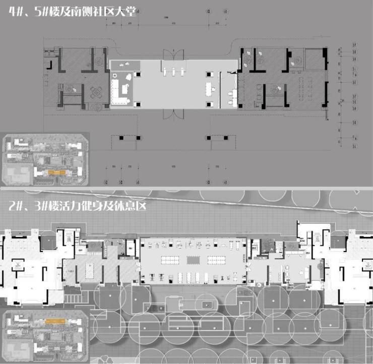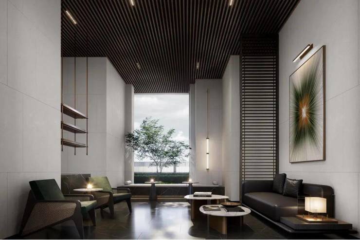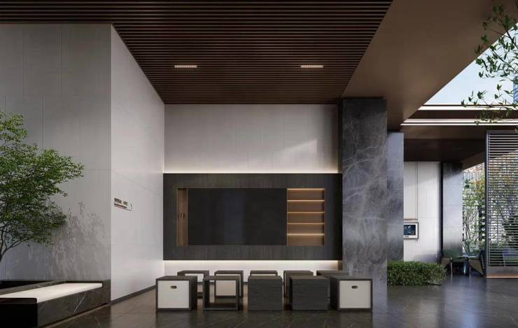 利用社区东大堂作为集中会所,植入接待区、咖啡吧、休闲书吧、共享办公等功能。根植岭南人文自然景观及名居特色,着力打造奢隐雅居。