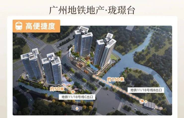双地铁上盖,高速地铁18号线+广州首条大环线11号线龙潭站。