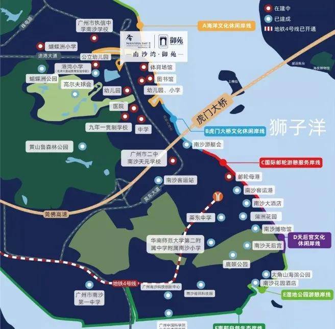 海陆双线并行。地铁4号线(已通车)、地铁22号线延长线(规划中)、32号线(规划中)、明珠湾大桥、虎门大桥、南沙客运港、邮轮母港、莞佛高速等水陆多维度交通在此吹响了“集结号”,形成5维立体交通路网。