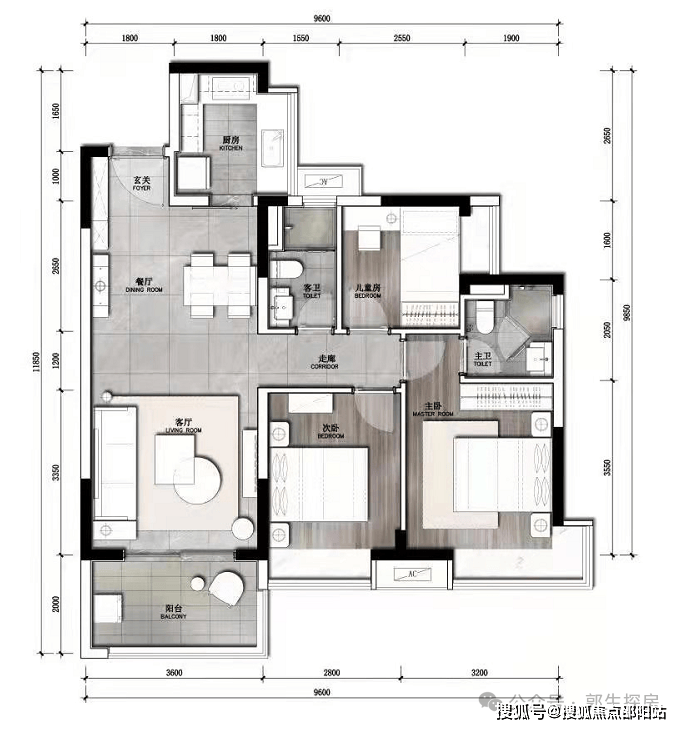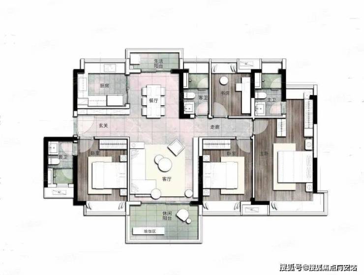 主卧套房带独立卫浴 + 衣帽间,保障私密性与仪式感;