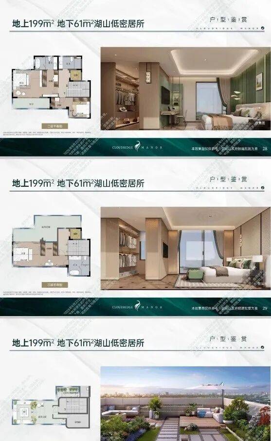 叠墅在售户型:地上199-377㎡、地下61-165㎡的“云缦”组团湖山低密别墅群