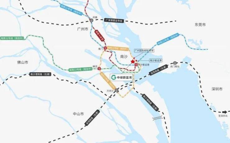 其中一个站点是南沙客运港站,落成后2站即可到达深圳。