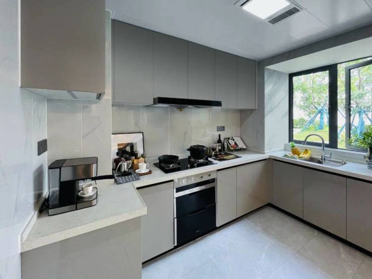 中绿蔚蓝湾还在厨房、洗手间等重要功能空间,布局了高规格产品,如选用高级瓷砖组合、厨房采用高级三件套,卫生间镜柜、洗手台都设置足够大的收纳空间。
