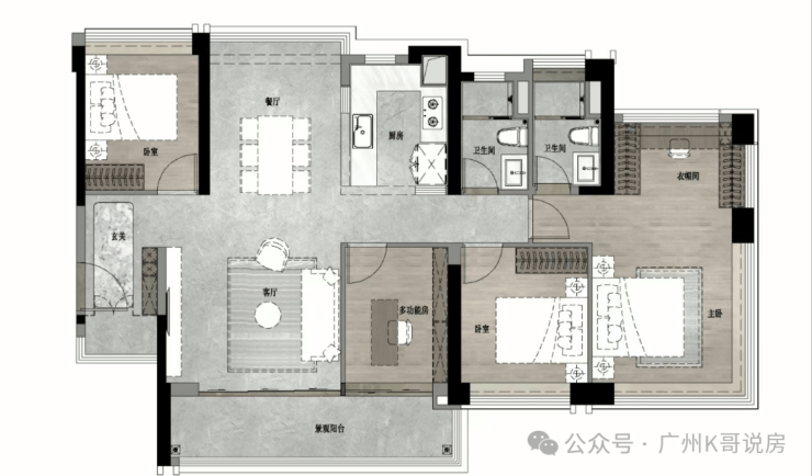 🔸景观舱主卧小家化:阳光衣帽间、360°环幕景观