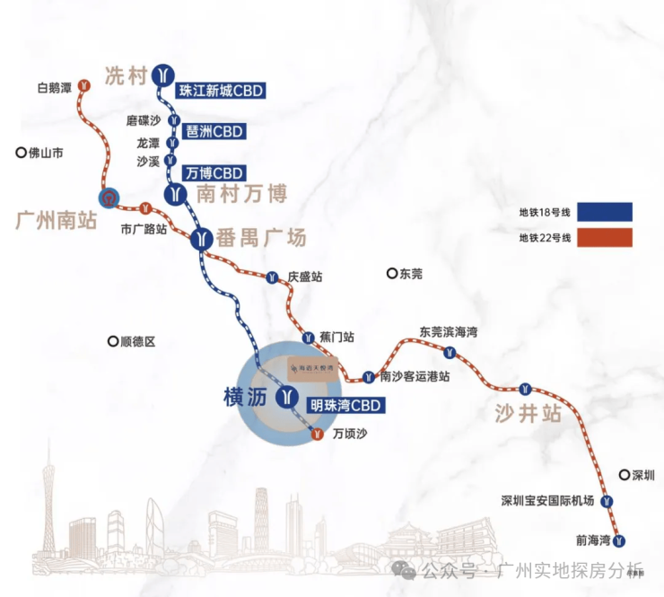 距离地铁18号线横沥站约500米,快线2站可达珠江新城,串联广州四大CBD,通勤效率高。