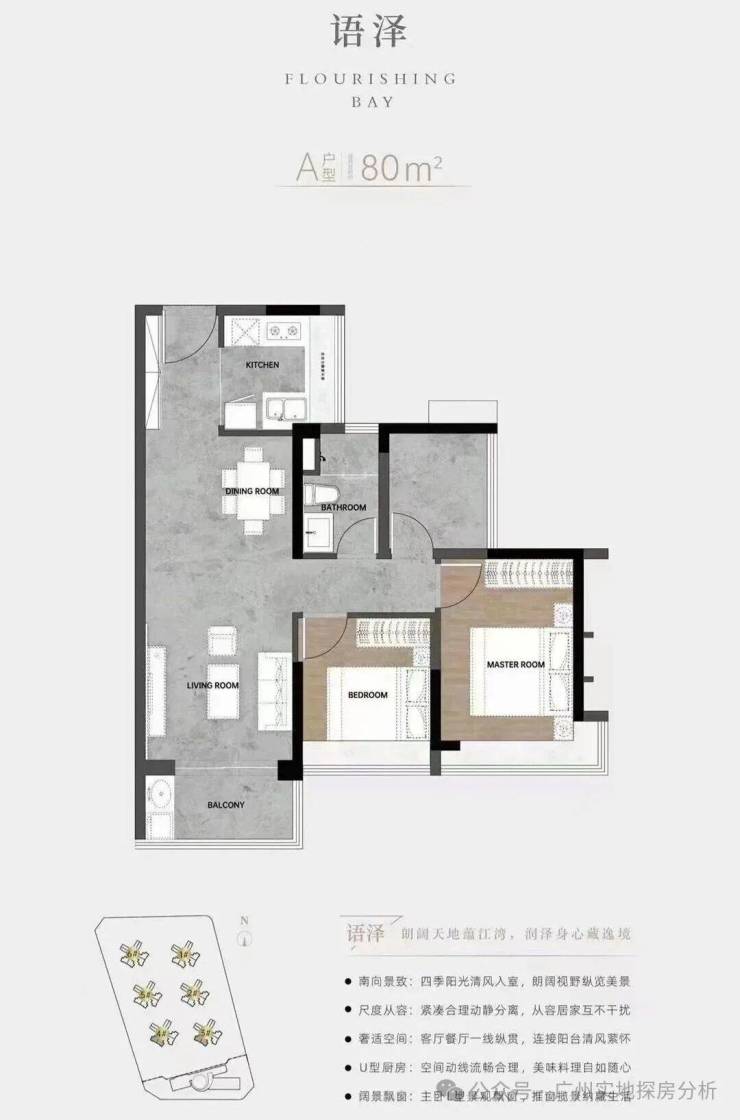 项目由六栋塔楼组成,楼栋户型蝶形布局全户型南向,兼顾东面河涌及南面江景资源,最大化视野景观。