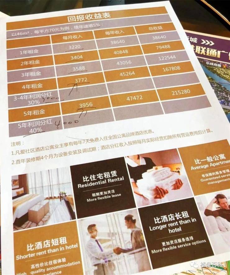 目前富凯星堤已和广州爱社区酒店管理有限公司合作,可选择与该公司签订返租协议,现按照70元/㎡/月计算,每年递增5%,租期可自由选择2-5年;另外,第3年至第4年,酒店管理公司还将返还30%的利润分红(利润为扣除保底租金、人工成本后的收益);第5年,则返还40%的利润分红,届时收益均可在爱社区的app上查询。