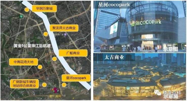 商业——社区一楼主要为商业街配套,业态以便利店、超市、餐饮店、银行、面包店为主力;3公里内汇聚5大商圈,星河COCOPARK、广船大型滨水商业区(建设中)、白鹅潭华润万象城(建设中)、聚龙湾太古商业(建设中)、中海花湾天地,举步即享繁华生活。