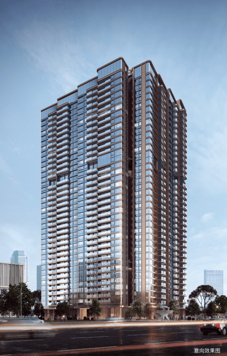 肩负打造城市豪宅标杆的使命,观澔府外立面设计采用大面积玻璃幕窗与玫瑰金色铝板线条完美结合,独创式连体板楼设计以及咬合式楼体布局将江景资源最大化,晶莹剔透,历久弥新,实现“高颜值”和“高品质”共存。