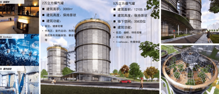 16万m³和2万m³的煤气罐,计划改造为演出场所和运动健身区,8.3万m³的煤气罐则将变身为美术馆和艺术家工作室。