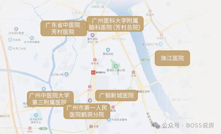三甲医院:项目 4 公里范围内有 5 所三甲医院,包括广东省中医院芳村医院、广州中医药大学第三附属医院、广州市第一人民医院鹤洞分院、广州市脑科医院等,此外,崇文二路侧的广钢医院正在升级改造为拥有 1200 张床位的三甲综合医院,为居民的健康提供有力保障