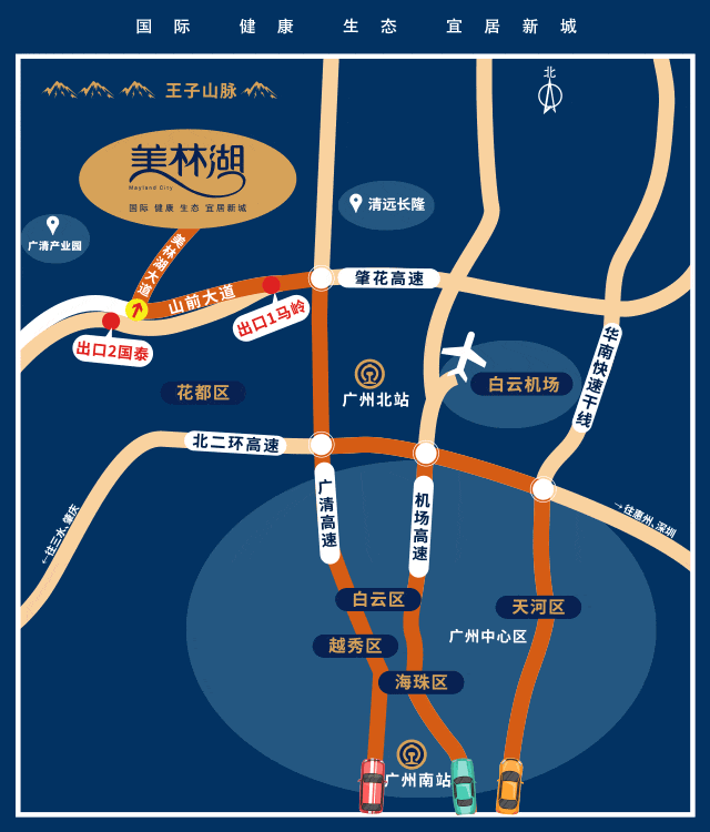 2、大广高速、广清高速、佛清从高速、肇花高速,四大高速环绕,50min到广州市区;