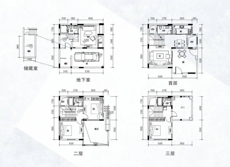 A2户型约208㎡ 3+1房4卫 1内院1车位1露台