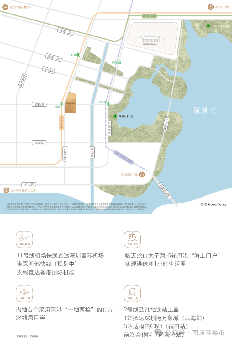 一席藏尽海/湖/园/城,四重盛景,踞守深圳湾畔约270°环瞰海景壮阔、湖境悠然、园景森氧、城脉璀璨的封面地脉。近享深圳人才公园,占地77万平方米,内湖面积约32万平方米,"公园生活圈"步行可达。(信息来源:深圳人才公园公众号)