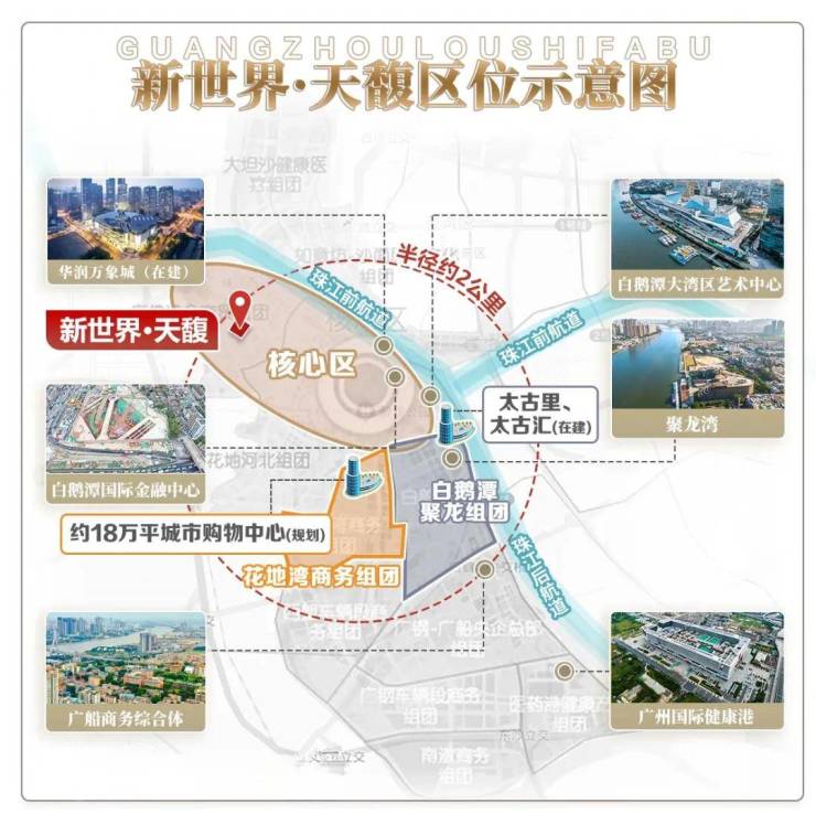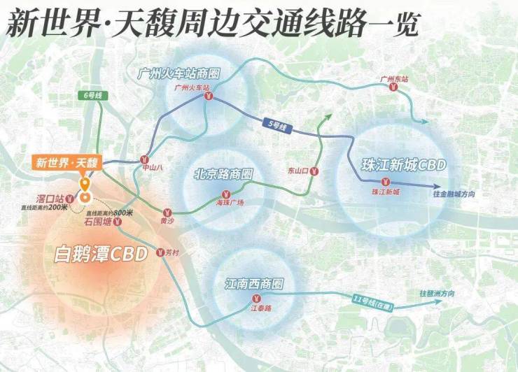 项目位于滘口板块,临近白鹅潭CBD,荔湾区目前在建的华润万象城商业,滨水街区太古里、太古汇,三馆合一都在附近,旁边就是5号线的首发站,去往珠江新城、金融城等地都无需换乘,相对来说这一片居住设施还是比较成熟的,还是豪华交标!