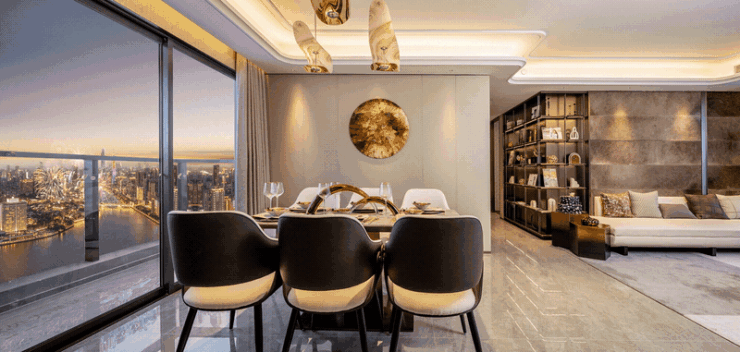 像餐厅,足以放下能坐下6人的圆桌,家庭聚餐绰绰有余。房间的灵活性,也能适应家庭的不同生活需求。例如两间次卧,可以打通为一间大房,父母来住时,也能有自己的江景房。