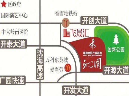 飞晟沁园位处广州科学城核心地段,周边拥有8条公交车线路、地铁6号线香雪站、以及四横五纵密集交通路网,交通便捷。