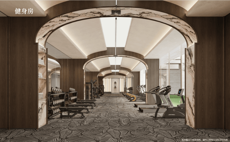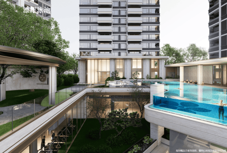 小区打造板块少有的 2.6 低密容积率,营造低密立体园林,隔绝城市喧嚣,留存满满绿意,与城市形成自然隔断。同时配备酒店化生活会所,融入岭南在地风情,营造都会之上难得的隐奢生活逸境。下沉式立体会所更是项目的一大亮点,溯源高奢酒店场景设计,引领现代奢居美学范式。会所覆盖娱乐、健身、儿童、交流等多种功能,室内外景观功能相互渗透,为业主提供丰富多样的休闲娱乐空间。