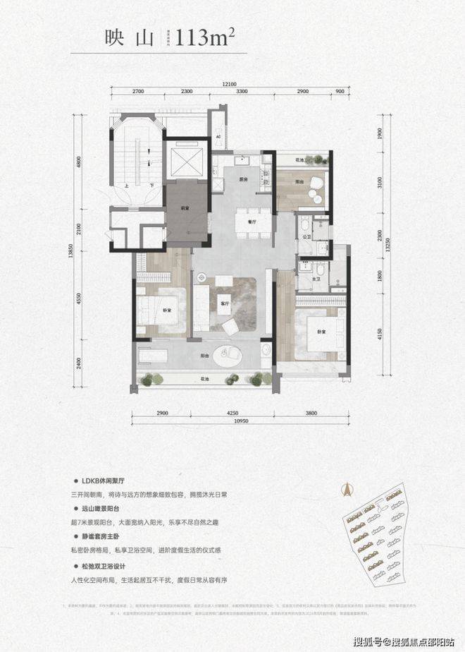 建面约113㎡的户型,就已经为业主带来更多的私密性和更大的视野范围。