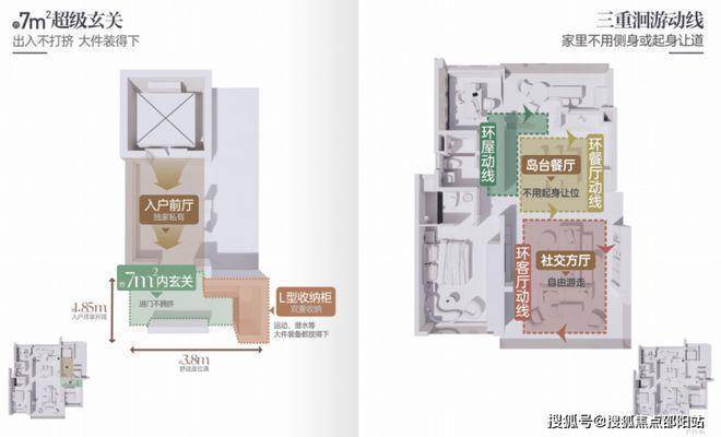 约8.48㎡私享前厅,从出电梯到入户门之间的阔气前室空间就相当于你家的私人领地,鞋柜、收纳柜、步入式玄关随你打造。