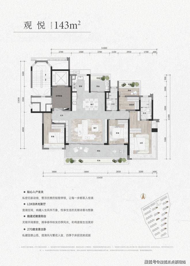 建面约143㎡的户型是实实在在的王牌,已经没有任何将就之感,做到了远超竞品的越级享受。