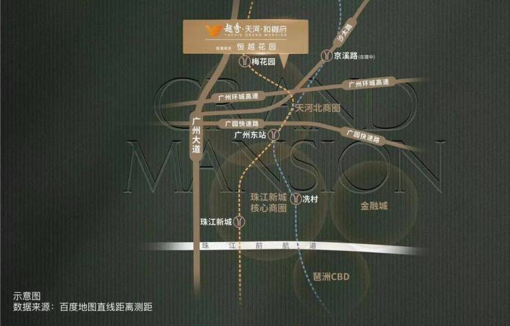 项目位于广州城市中轴,天河北板块,距离珠江新城直线距离仅5公里,一路串联广州大道北、天河北、珠江新城等商圈