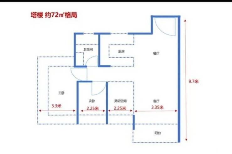 72 平方米三房为塔楼户型,2 梯 5 户设计,通过高使用率规划让空间紧凑实用,每个功能区都能充分利用,总价约 360 万起,适合小家庭入手。