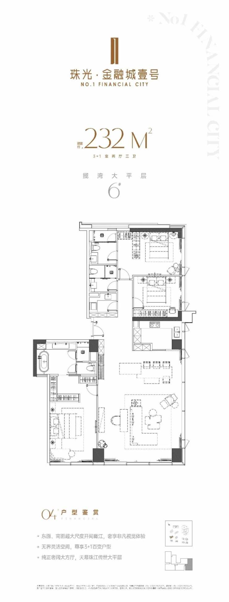 6栋瞰江大平层(16层-29层)206-260㎡,IMAX江景入户,帷幄CBD万千盛景,LDK一体化设计,无界延伸塔尖想象