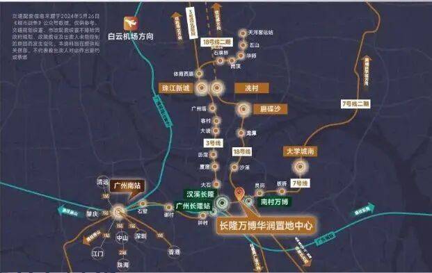 项目交通优势得天独厚,坐拥地铁 3 号线、7 号线、18 号线三大黄金线路。一期距 3/7 号线汉溪长隆站约 500 米(步行 8 分钟),距 18 号线南村万博站约 1.2 公里;二期下楼即达汉溪长隆站,出行更便捷。这三条线路串联广州核心区域,搭配广东城际铁路及 6 公里外的广州南站,实现湾区乃至全国快速通达,无论是日常通勤还是跨城出行,都高效省心。
