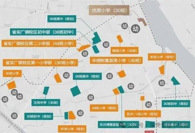 项目自身只配建了一所幼儿园,小学根据政策周边的学校,周边有东沙小学、新东小学以及广钢南区的华附荔湾小学等,具体读哪个就看交楼后教育部门的安排了。