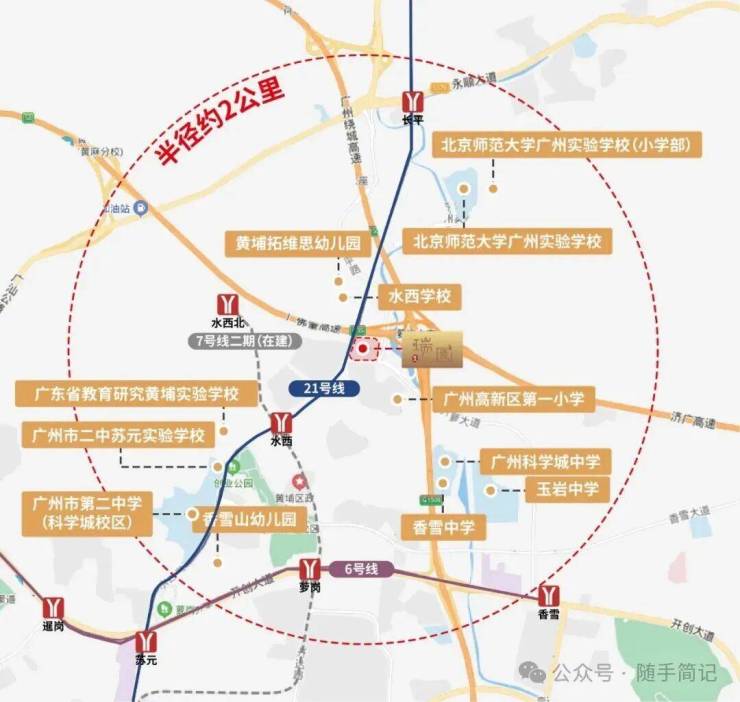 项目周边广州市二中苏元实验学校:北京师范大学广州实验学校、玉岩中学、科学城中学、广东省教育研究院黄埔实验学校、广州市科峻小学等多所学校环绕。