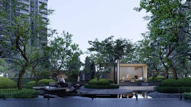 项目园林取《千里江山图》中“游、聚、乐”三处生活场景打造三大核心院落,将东方山水、书院人文融贯一园之中,并打造云翰人文生活馆、下沉式泳池等臻贵配套,打造高质生活社交美学。
