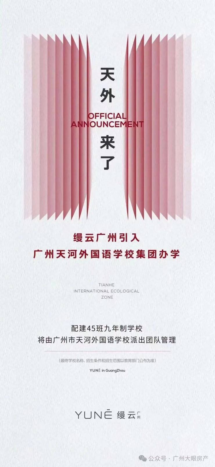 高端人居市场罕见的社区内自带全线12年公立教育配套---幼儿园、18班小学、27班初中, 规模不算大,家门口就是学校,足够方便,已经确定引进了天河外国语学校办学,瞬间吊打了天河东的一众项目,并确定2025年9月开学。