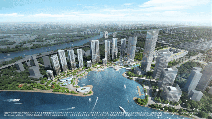 最关键的亮点——内港湾,这是广州珠江航道上独一无二的规划设计。