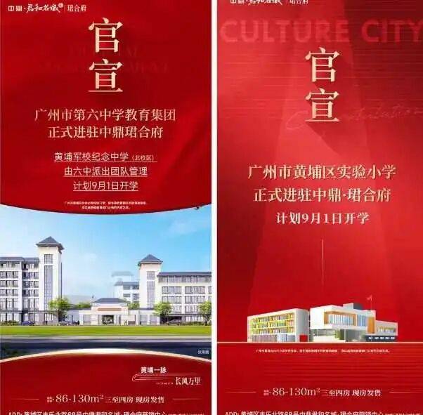 2024年4月30日,中鼎珺合府官宣广州市第六中学教育集团(黄埔军校纪念中学)进驻项目,该学校是广州市第六中学管理和办学的公立学校,现在已经开学。