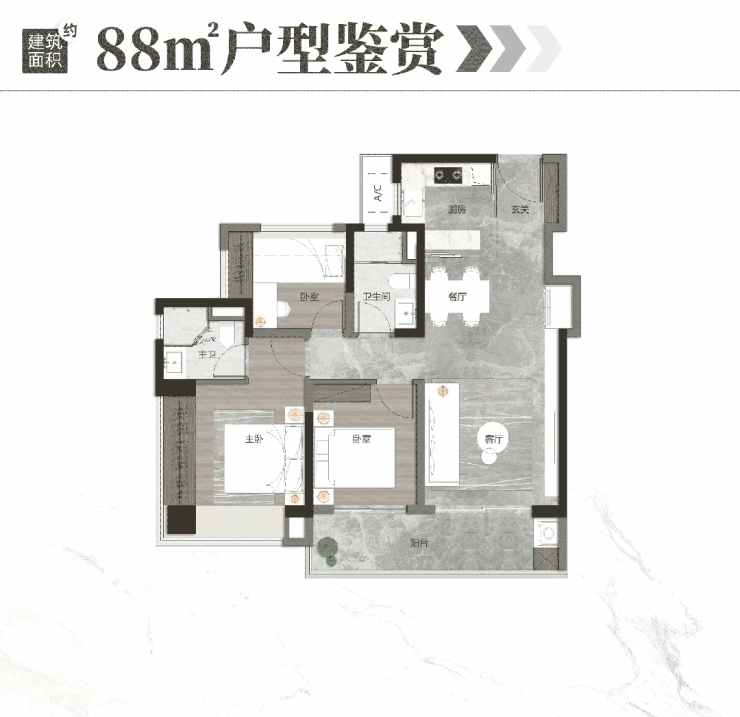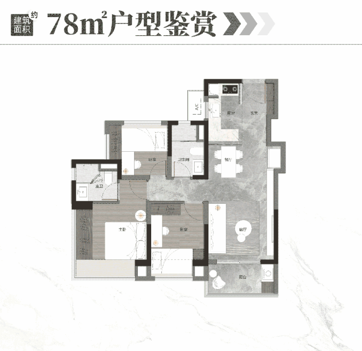 户型面积:建面约78-88-106-116㎡全南向三至四房
