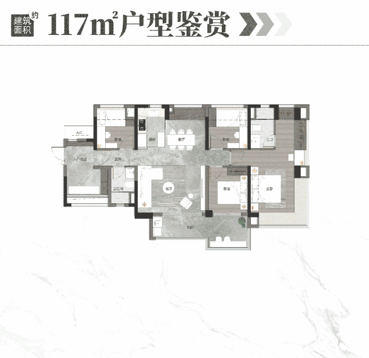 一共打造了建面约78㎡、88㎡、106㎡、116㎡的3-4室的四个户型。