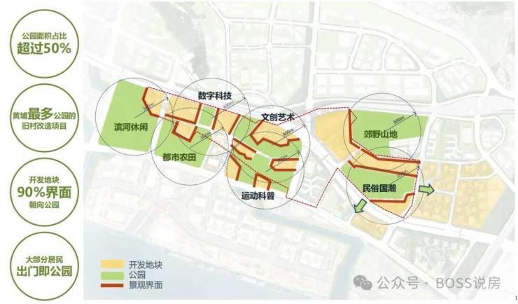 所开发地块约90%界面朝向公园,打造 300 米见绿,500 米见园;