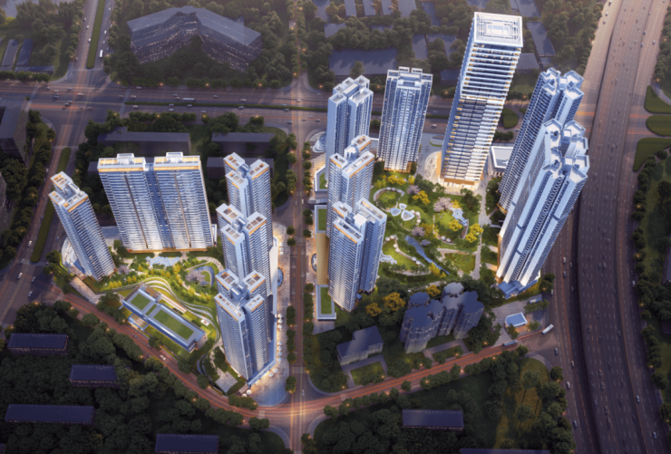 以广州城投·天禧为例,广州城投地产打破传统布局思维,通过围合式布局,打造出百米超宽楼间距与中央花园,重构低密通透的社区尺度,同时让每户单位享受更长的日照时间。