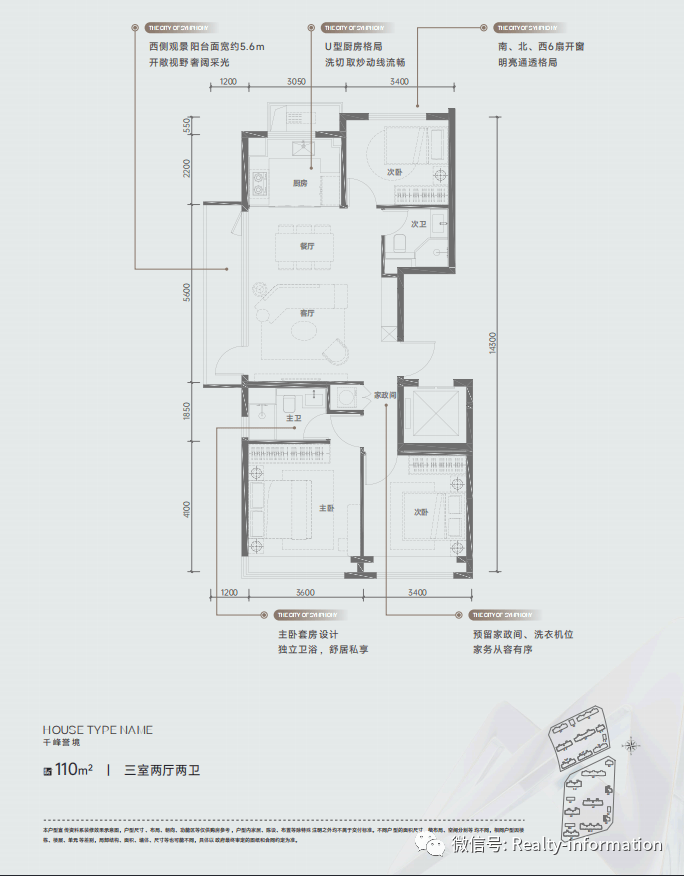 105㎡三居室:舒适三居,全明通透。会所式的家庭聚会:LDK客餐厅一体化设计,满足多功能聚 会场景,U型厨房,尽享烹饪乐趣。步入式玄关,超强整理全时光收纳,运动的热 爱、萌宝婴儿车,更大空间实现整洁的生活。“主卧小家化”理念,主卧配置转角飘窗,独立步入式衣帽间。公卫干湿分离,生活使用高效。