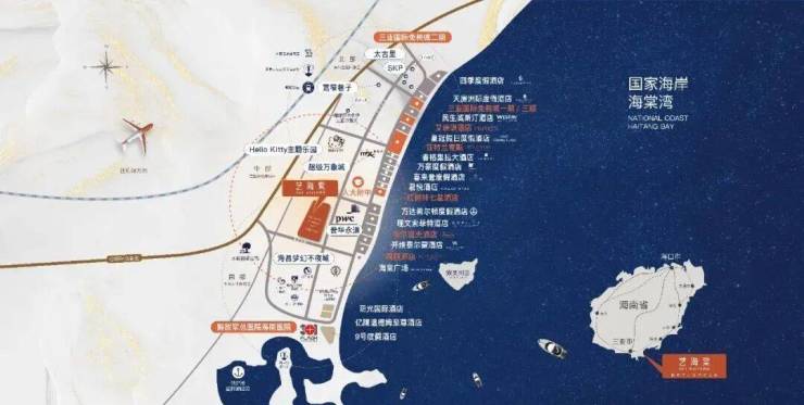 落址海南自由贸易港,三亚国际旅游消费中心,“国家海岸”海棠湾,湾区一线核心腹地。