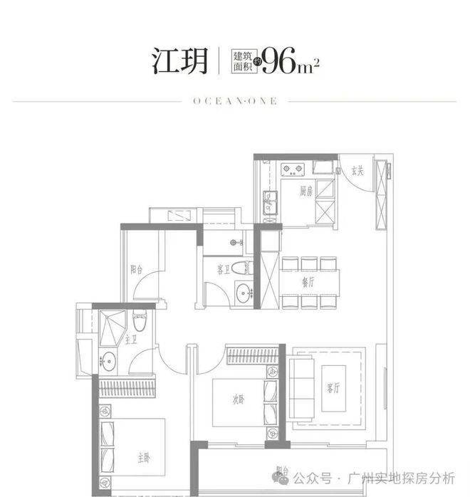 建面约96㎡竖厅:6.4米景观阳台+三开间朝南。