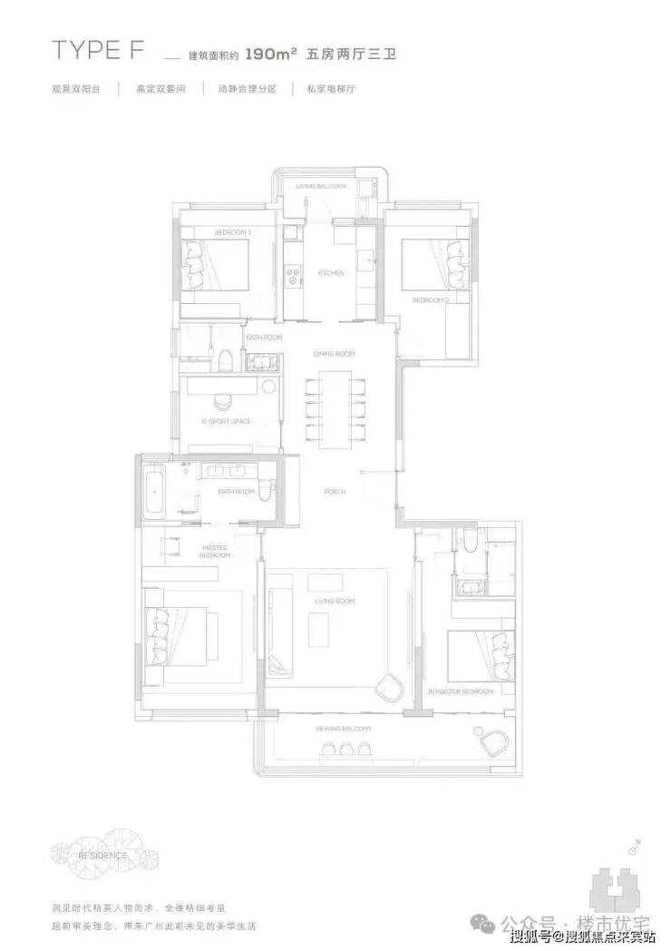 190㎡产品为五房两厅三卫产品,充满了对云端人群生活的独特见解,南向双主卧,中西厨布局,打造纵向超长LDK一体化空间,产品所体现的不只是居住产品,更是特属客群所拥有的生活方式。