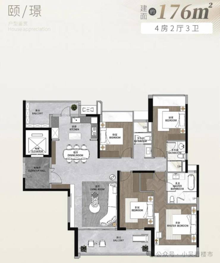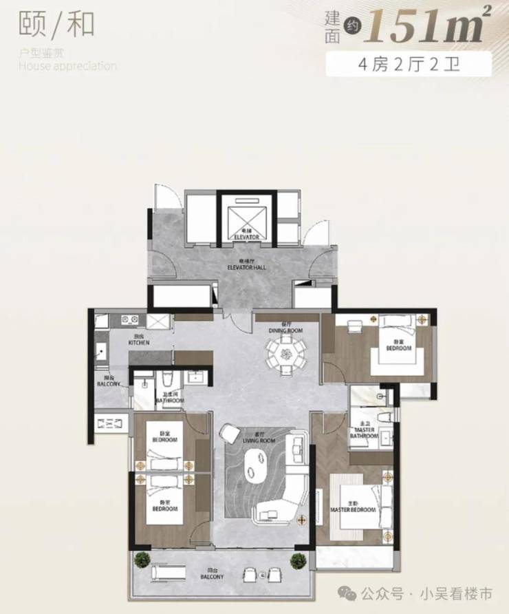 R13-14栋仅32层高,是R区第一座非超高层独栋,也是富颐都荟时隔一年多再次推出非超高层产品。再搭配2梯4户的配置,整体住起来,更低密、舒适。