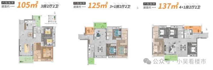 R9-R10栋还有一些尾货在售,建面105-125-137平,单价4.5-5.2万左右,户型图如下: