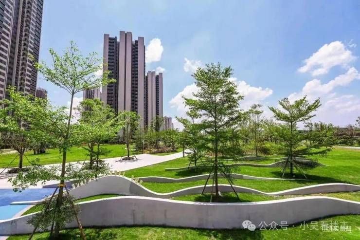 无论是园林打造或是外立面,交付时的实景图都比效果图更好看,而且整个社区是一眼望不透的,项目频繁使用了框景、换景的手法,真正做到了移步易景。