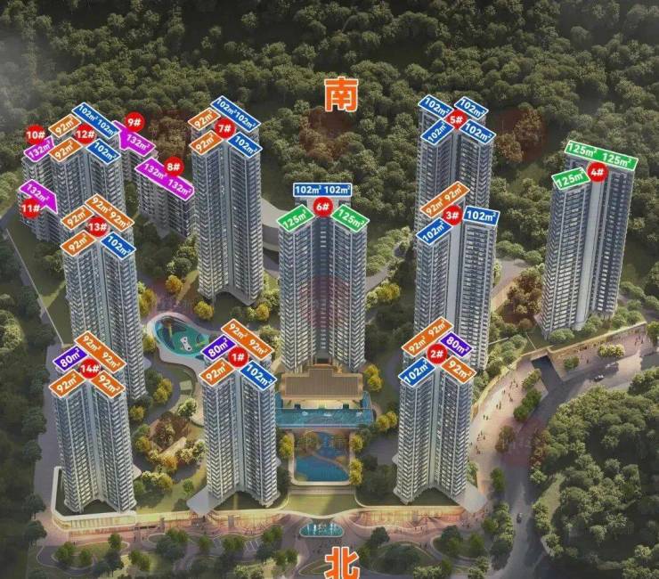 1号楼,2梯5户,26层高,全南向、超100%使用率、南向望山景、中心园林景观、会所泳池