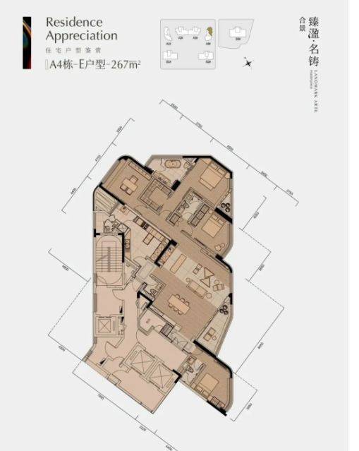 项目的户型设计以大平层为主,面积段涵盖 280-531㎡,满足高净值人群的居住需求,不同户型布局合理,空间利用率高,彰显高端居住格调。